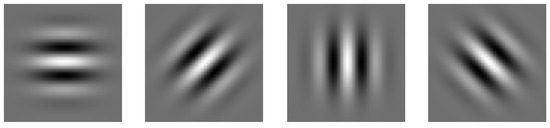 - Daugman, J.G. Uncertainty relation for resolution in space, spatial frequency, and orientation optimized by two-dimensional visual cortical filters. J. Opt. Soc. Am. A 1985, 2, 1160–1169. Available online: http://www.ncbi.nlm.nih.gov/pubmed/4020513 (accessed on 19 February 2018). [CrossRef] [PubMed]