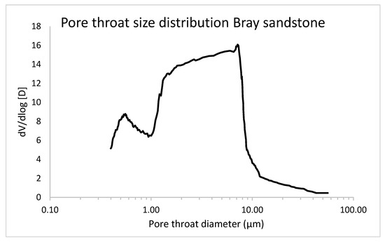 Pore size distribution of a sample of Bray sandstone, determined using MIP.