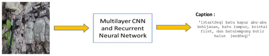 The interpretation of objects from the geologist’s perception encompasses all objects that appear in the background of the image visualization. The geologist focuses on interpreting the rock in the image and ignores the common objects. This is contrary to the previous studies about captioning and a different way of presenting captions. Captioning experiments from this perspective is directed to describing and identifying the rock in the images. Other aspects in the images, such as people, cars, and animals, are not important for identifying the rock. Furthermore, our model can predict the words for the rock in the image and acquire the image’s caption. Figure 1 highlights the problem domain of the study. The objective was to generate a caption for rock images. In line with the research objective, the caption outcomes are in Indonesian and match with the image of the rock.