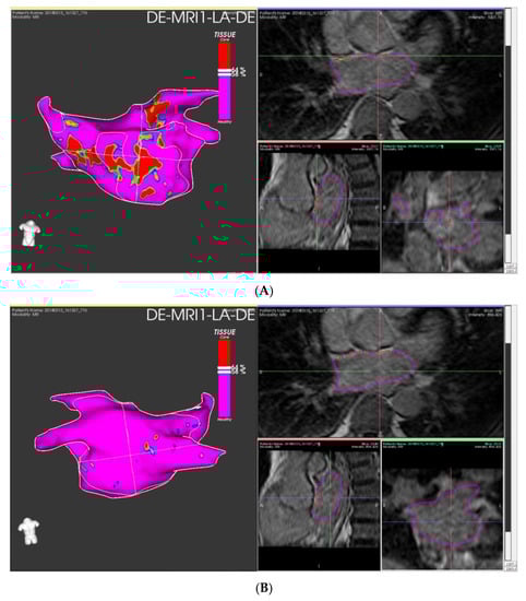 - Badger, T.J.; Daccarett, M.; Akoum, N.W.; Adjei-Poku, Y.A.; Burgon, N.S.; Haslam, T.S.; Kalvaitis, S.; Kuppahally, S.; Vergara, G.; McMullen, L.; et al. Evaluation of Left Atrial Lesions after Initial and Repeat Atrial Fibrillation Ablation; Lessons Learned from Delayed-Enhancement MRI in Repeat Ablation Procedures. Circ. Arrhythm Electrophysiol. 2010, 3, 249–259. [Google Scholar] [CrossRef] [PubMed]