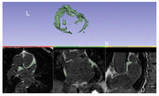 - Nakamori, S.; Nezafat, M.; Ngo, L.H.; Manning, W.J.; Nezafat, R. Left Atrial Epicardial Fat Volume Is Associated With Atrial Fibrillation: A Prospective Cardiovascular Magnetic Resonance 3D Dixon Study. J. Am. Heart Assoc. 2018, 7, e008232. [Google Scholar] [CrossRef]