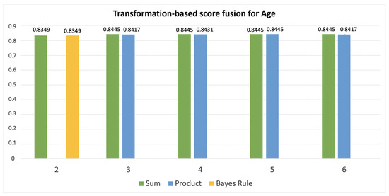 The transformation-based fusion techniques used in this work are weighted sum, weighted product, and the Bayesian rule.