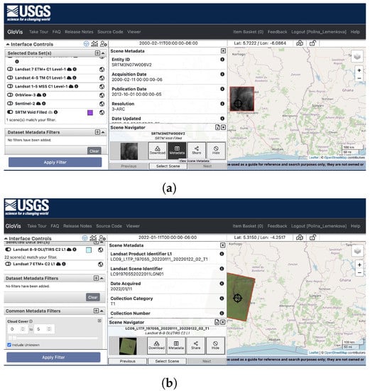 The data were collected from the United States Geological Survey (USGS)’s Global Visualization Viewer (GloVis), a satellite image repository with publicly available open access to remotely sensed data (Figure 2).