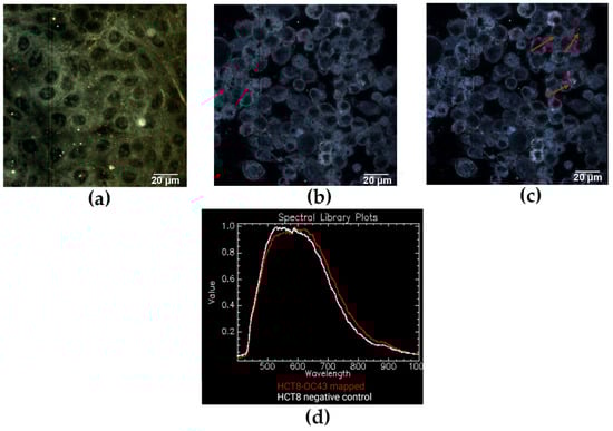 Once the hyperspectral image is captured, it is further analyzed using ENVI 4.8 hyperspectral image analysis software (Harris Geospatial Solutions, Inc., Herndon, VA, USA), which generates unique spectral signatures for individual pixels of the analyzed sample and saves it as RSL. The hyperspectral image stores the spectral data as three-dimensional datacubes, with X and Y dimensions being spatial and the Z dimension being spectral. The spectral response characteristic of the biological sample is subsequently mapped using SAM [,].