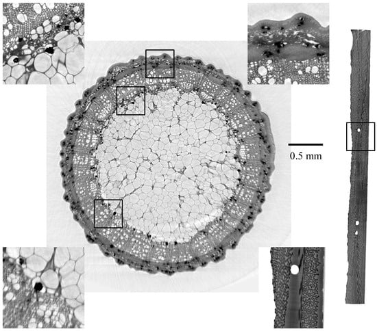- Matsushima, U.; Hilger, A.; Graf, W.; Zabler, S.; Manke, I.; Dawson, M.; Choinka, G.; Herppich, W.B. Calcium oxalate crystal distribution in rose peduncles: Non-invasive analysis by synchrotron X-ray micro-tomography. Postharvest Biol. Technol. 2012, 72, 27–34. [Google Scholar] [CrossRef]