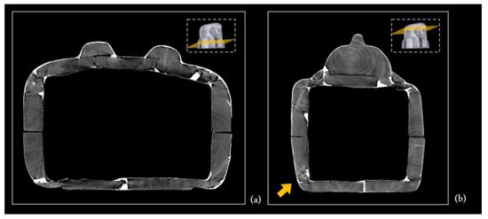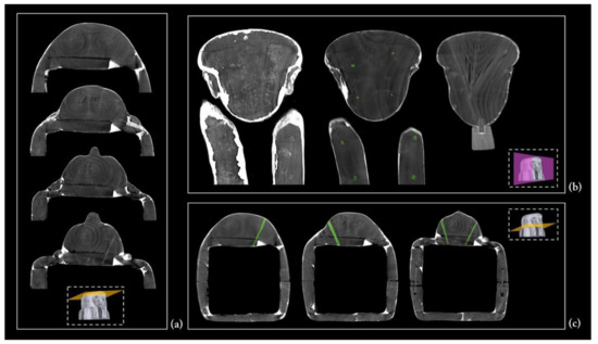 Among the latter techniques, it is worth mentioning X-ray computed tomography (X-ray CT) [20,21], which allows for non-invasive investigation of the entire structure of objects, thus enabling the identification of the different constituent materials and the study of the construction technique [22,23]. X-ray CT is a versatile technique that can be applied to a wide range of cultural heritage artefacts of different sizes and compositions [24].