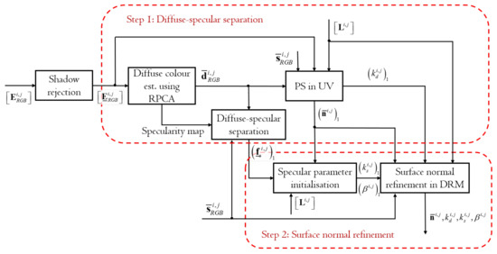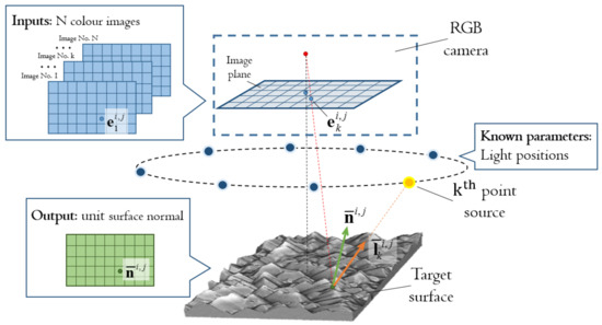 - Barsky, S.; Petrou, M. The 4-source photometric stereo technique for three-dimensional surfaces in the presence of highlights and shadows. IEEE Trans. PAMI 2003, 25, 1239–1252. [Google Scholar] [CrossRef]