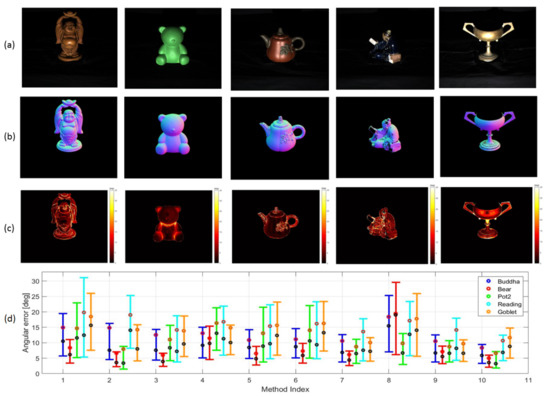 - Shi, B.; Zhe, W.; Mo, Z.; Duan, D.; Yeung, S.; Tan, P. A benchmark dataset and evaluation for non-Lambertian and uncalibrated photometric stereo. In Proceedings of the Proceedings of the IEEE Conference on Computer Vision and Pattern Recognition (CVPR), Las Vegas, NV, USA, 27–30 June 2016; pp. 3707–3716. [Google Scholar]