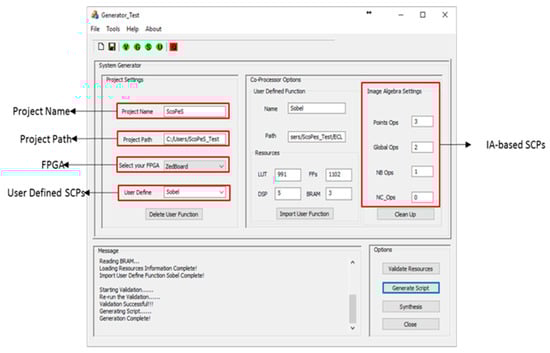 The rest of this paper is organized as follows. In Section 2, we introduce the background and related work in terms of Image Algebra, high-level programming models and different FPGA implementations of image processing algorithms and systems. In Section 3, we provide a user’s view of our design approach. In Section 4, we describe the architectures and underlying implementation, including our Generic and Function-specific Image Algebra-based SCPs and how they connect and communicate with each other. In Section 5, we demonstrate how we create a new image processing system using our SCoPeS environment. In Section 6, a comparison between different design approaches for a simple image processing operation is presented for evaluation purposes.