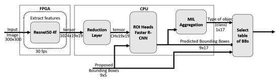As for the gaze-driven CNN implementation, accordingly with the time measures for real-time compatibility and simplification of R-CNN input by channel number reduction we proposed—see Section 2.4—only the ResNet backbone is implemented on FPGA; as depicted in Figure 5. The details of all modules from the input of CNN to the final aggregation of decisions by MIL are given in Table 2 below.