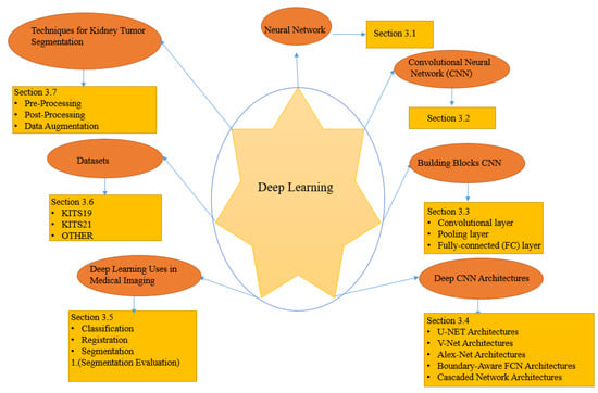 This section discusses the DL concepts, techniques, and architectures of DL algorithms for kidney and renal tumor segmentation that we discovered when reviewing the medical image analysis articles examined in this work, as summarized in Figure 3.