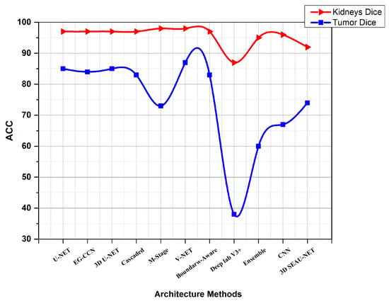 Tow introduced hybrid models in [70,71,72]. Abdul Qayyuma et al. [70] designed a hybrid 3D residual network (RN) with a squeeze-and-excitation (’SE’) block to acquire spatial information by utilizing cSE blocks. The reweighting function in a “three-D RN” is used. Their network has been tested on various datasets and performs well in medical image segmentation, especially in volumetric segmentation of the kidney, liver, and related malignancies. Cheng et al. [71] enhanced 3D SEAU-Net to develop a multi-class segmentation architecture to improve the performance. Their model aggregates residual network, dilated convolution, squeeze-and-excitation network, and attention mechanism. The multi-class segmentation job is decomposed into two more easy binary segmentations. Cruz et al. [72] provide an effective approach for segmenting kidney cancers in computed tomography. Thus, post-processing was applied on the DeepLabv3+ 2.5D model with DPN-131 encoder. Additionally, image processing methods such as normalization, proportional distribution of training and validation datasets, and DART were employed. Finally, the findings were achieved by integrating preprocessing, segmentation of the kidney tumor, and postprocessing.