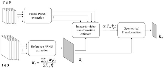 - Yang, W.C.; Jiang, J.; Chen, C.H. A fast source camera identification and verification method based on PRNU analysis for use in video forensic investigations. Multimed. Tools Appl. 2021, 80, 6617–6638. [Google Scholar] [CrossRef]