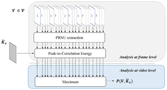 Pipeline describing the testing process between a query video and the camera PRNU.