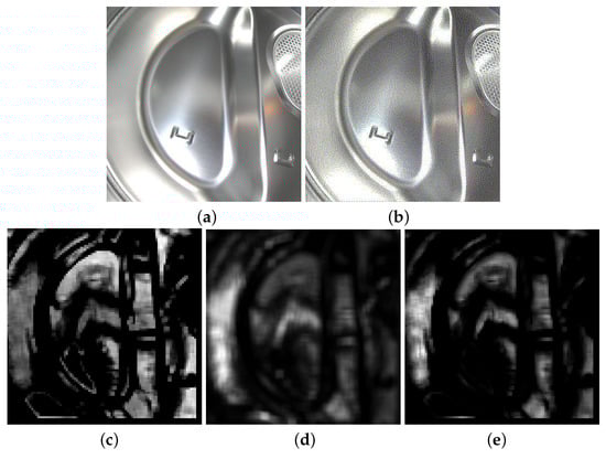 These figures showed the calculated visibility map, local SDSIM map, and visibility-weighted local SDSIM map. In Figure 3c, the visibility map captured visible artifacts. In Figure 3d, the local SDSIM indicated that the greatest distortions appeared in the regions of greatest energy, so the distortions in these regions were invisible. As Figure 3e shows, the visibility-weighted local SDSIM map had a better performance in predicting the locations and perceived visible intensities of distortions.