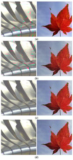 - Wang, Z.; Bovik, A.C.; Sheikh, H.R.; Simoncelli, E.P. Image quality assessment: From error visibility to structural similarity. IEEE Trans. Image Process. 2004, 13, 600–612. [Google Scholar] [CrossRef] [PubMed] [Green Version]