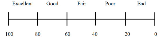 There are five students (three males and two females; age 27.2 ± 6.65) who participated in the experiment. One student (the author) had significant experience with the subjective assessment of printing image quality. The other four students were all non-experts in printing and image quality assessment. All students were screened prior to participation for normal, or corrected to normal, visual acuity and normal color vision. Image pairs were presented on the display for a duration of 10s. A reference image and a halftone image are placed on the left and right, respectively. Observers were given instructions to judge the reproduction of objects’ glossiness in images and to provide corresponding scores. After observing an image pair, observers were asked to provide corresponding scores to the image pair using a continues horizontal scale, as depicted in Figure 6. The scores corresponding to the above interval are 100, 80, 60, 40, 20, and 0, respectively. Scores ranged from 100 to 0 using a continuous horizontal scale, with 0 representing poor reproduction and 100 representing objects that were most similar to the original image.