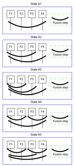 As shown in Figure 5, we consider five states based on our approach. The classification rates are computed and are illustrated in Table 3. The results show that all hierarchical states (states A2, A2, A4, and A5) obtain significant improvement in terms of classical state of fusion method (state A1 [31]). Also, when we use two subsets with size larger than two (state A5), we obtain the best result.