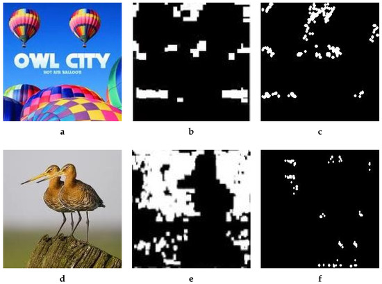 Meena’s method also showed similarly lower detection accuracy, shown in Figure 10c,f. There were not enough clues to detect the forged area. The method relies on plain copy–move forgery, i.e., part of the image is copied or replicated in a same image without applying any type of postprocessing. As the image shows in Figure 10c,f, the detection accuracy stood at almost zero and gave more potency to forgery detection algorithms. Therefore, the results of Meena’s method reveal that the accuracy rate of the forged regions was almost untraceable, and only natural similarity is detected.