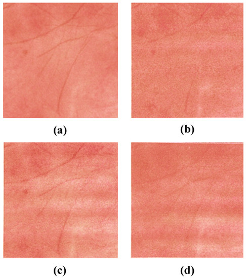 The results using each method are shown in Figure 9. In this experiment, only one image of a palm was used, and it was of a man’s right hand. The target skin image is shown in Figure 9a, and Figure 9b–d shows the skin objects based on the CMYK concentrations estimated using LUT, multiple regression analysis, and neural networks, respectively. Subjectively, the method using multiple regression analysis yielded the most favorable results. The objects using LUTs lost their overall smoothness, which may be because of the lack of interpolation between the pigment concentrations obtained from the color patches. In the LUT, a data point outside the dataset was substituted by the closest value in the dataset. In the neural network-based method, the overall concentration was averaged and contrast was reduced. We consider that the neural network with three intermediate layers was overcomplicated because the present dataset was very linear. At least one layer of neural networks works similarly to multiple regression analysis, and thus the results would be comparable. We also evaluated the estimation accuracy of each of the three methods using leave-one-out cross-validation, and found that the RMSE of multiple regression analysis was minimal at 0.031. Significant differences in RMSE values for each method were analyzed by t-test. The results of the analysis at a significance level of 0.05 showed a significant difference in errors between multiple regression analysis and neural networks, whereas there was no significant difference in errors between multiple regression analysis and the LUT, and between neural networks and the LUT. Because of the high reproducibility of the detailed textures and the low error of the prediction method, we decided to use multiple regression analysis in this study. Here, white streaks are seen on the printed objects; however, since they are not observed in the halftone data for printing, we consider this as a problem with our printer. Figure 10 shows the fabricated object with multiple regression analysis. In addition, since our research aims at planer printing, we used a UV printer (UJF-3042HG, Mimaki Engineering, Nagano, Japan); however, the process is the same as a 3D printer. While Mimaki 3D printers [34] and Stratasys 3D printers [35], which are widely used for color 3D printing, have a resolution of 600 dpi, Mimaki’s UV printer can print at 1200 dpi vertically and 720 dpi horizontally. The higher the printing resolution of the printer compared to the resolution of the camera, the more halftone dots can be used to represent each pixel. Therefore, the higher printing resolution allows more detailed representation of the pigment concentration. Finally, we discuss the dependency of our method on printers and inks. The elements required for the method are full-color printing with CMYK inks, UV-curable inks that can be stacked, and clear inks. Therefore, we used a Mimaki UV printer (UJF-3042HG, Mimaki Engineering) as a printer setup that meets these requirements. There are several other UV printers that also satisfy the requirements (e.g., SC-V7000, Epson; VersaUV LEF2-200, Roland). In addition, the properties of clear ink vary depending on the ink manufacturer and may affect our method; thus, it is necessary to investigate the feasibility of using each clear ink through experiments.