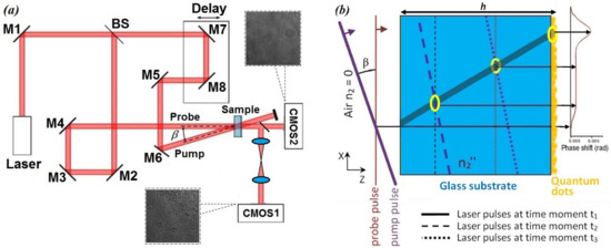 However, in the case of a high concentration of nonlinear refractive index inhomogeneities, the diffraction pattern induced by NDPM of the probe pulse inside the sample is a rather chaotic intensity distribution, where no individual local inhomogeneities of nonlinear refractive index can be distinguished. In this study, due to the high concentration of QDs deposited onto the glass substrate (there were actually several overlapping QD layers), we observed this type of probe pulse inline hologram (see Figure 3a).