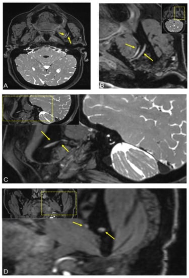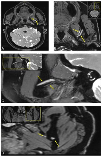 - Wu, W.; Wu, F.; Liu, D.; Zheng, C.; Kong, X.; Shu, S.; Li, D.; Kong, X.; Wang, L. Visualization of the Morphology and Pathology of the Peripheral Branches of the Cranial Nerves Using Three-Dimensional High-Resolution High-Contrast Magnetic Resonance Neurography. Eur. J. Radiol. 2020, 132, 109137. [Google Scholar] [CrossRef] [PubMed]