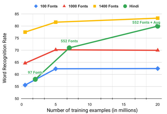 - We are the first to use over 500 Hindi fonts with an existing synthesizer and show that the font diversity can significantly improve non-Latin STR. Specifically, on the IIIT-ILST Hindi dataset, we achieve a remarkable WRR gain of over using more than 500 fonts and different augmentation techniques.