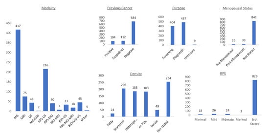 - Modality/Procedure: Identification of the imaging modality or procedure description from the title, being MG, MRI, US, biopsy, or a combination of up to three of those imaging modalities/procedures;