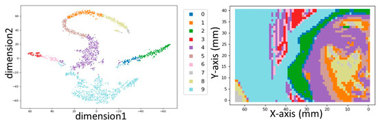 In addition to clustering, we also considered data visualization. For this reason, we applied dimensionality reduction methods to project each high-dimensional spectrum vector to a two-dimensional vector. Next, the two-dimensional projections were plotted, thus achieving spectra visualization.