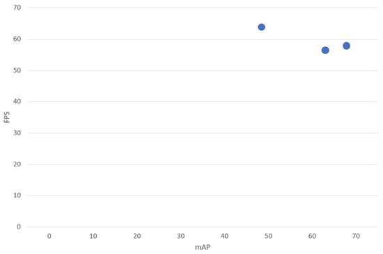 The F1 score and the mAP are used to compare the performance of the three YOLO family algorithms, namely YOLOv3, YOLOv4, and YOLOv5. As seen in Equation (3), the F1-score can be defined as the harmonic mean value of precision and recall [60]. It’s also the model’s test accuracy. The highest possible F1 score value is 1, which indicates perfect precision and memory, while the lowest possible value is 0, which indicates either zero precision or recall. Furthermore, an average of the average precision of all the classes can be defined as a mAP, indicated in Equation (5), where the number of queries is denoted by q and average precision for that query is denoted by AveP(q). The mean of AP can then be used to determine mAP. To determine the accuracy of machine learning algorithm a mAP metric is also used. The true positive is the total number of ships detected by the algorithm from satellite images. The number of false positives is the number of non-ship objects that the algorithm mistakenly detects as a ship, and the number of false negatives is the number of ships that the algorithm fails to detect. Furthermore, the algorithms’ inference speed can be determined by a frame per second (FPS). The frame rate is inversely proportional to the time it takes to process a single frame of video. IOU is the ratio of the ground truth label’s area of overlap to the prediction label’s area of union. To determine if a prediction is true positive or false positive, an IOU threshold value was utilized. The average precision is then calculated using the precision-recall curve. A mAP is defined as the average of the average precision of all the classes, as previously indicated. It’s worth mentioning that accuracy is defined as the percentage of true predictions to total predictions. A model’s precision is 100 percent if 50 predictions are produced and all of them are correct. Precision is defined as the number of true objects in an image that are not considered, as shown in Equation (1). On the other hand, recall is defined as the ratio of correct predictions to the overall number of objects in the image, as shown in Equation (2). For instance, if a model predicts 65 true objects in an image with 100 genuine objects, the recall is calculated to be 65%. One cannot imply that the model is accurate if it shows high precision and recall. An algorithm is stated as accurate if it has a good balance between precision and recall. To determine this, the same F1- score is used to check whether the model is accurate or not.