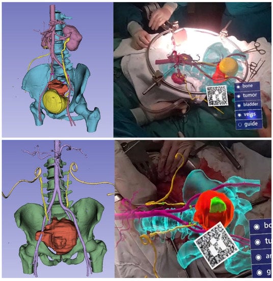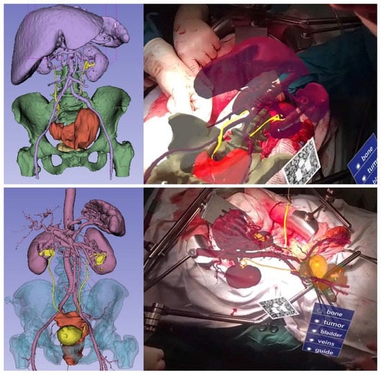However, the need for digital support for surgery is confirmed by the active discussion of the methods of stereotaxic surgery, including those in hybrid operating rooms, that allow performing an intraoperative CT scan [26,27,28]. Thus, the opportunities that AR/MR provides, both at the stage of preoperative planning, and especially in the intraoperative navigation are, in our opinion, extremely in demand for the surgery of primary and recurrent cancer patients; and the study of the results of applying these techniques is a part of AR/MR that is especially relevant.
