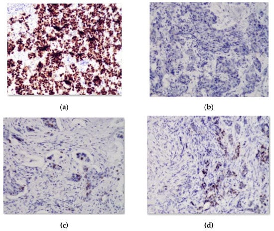 A software module was developed for computer experiments, which automatically defines a preliminary diagnosis. The software module is a part of the HIAMS software package []. Examples of immunohistochemical images are shown in Figure 2.