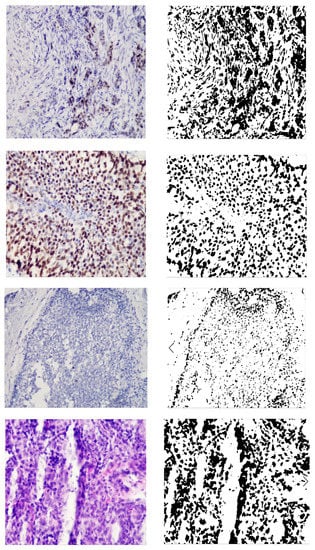 For the computer experiments, the immunohistochemical image dataset of breast cancer was used []. Table 1 shows the parameters of the selected dataset.