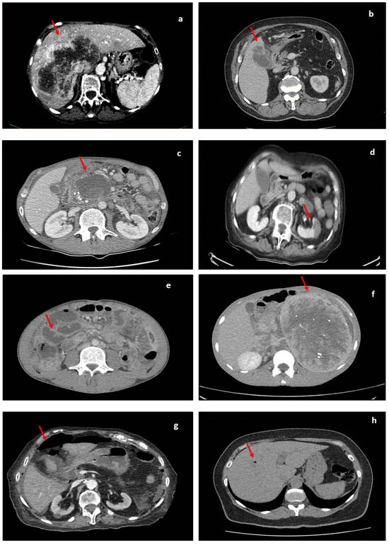 Right upper abdominal pain, fever, vomiting, signs of peritoneal irritation, moderate leukocytosis, and ultrasonography findings are helpful but not specific, and they barely help to differentiate other pathologies that do not have indications for surgical treatment, such as hepatitis, peptic ulcer disease, pancreatitis, primary hepatic abscess, gastroenteritis, and urinary tract infection [59,60,61,62].