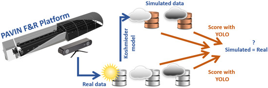 - The second question is: How can we validate the realism and representativeness of a digital simulator? Will the behavior of artificial intelligence be the same in front of the simulator and in reality? To make things more complex, the data can be partially or totally simulated, so X-in-the-loop simulators appear with augmented reality mechanisms. It is a model of this type that we propose to test in this article.Beyond numerical simulation, physical simulation methods are used to simulate adverse weather conditions. This is the case with the PAVIN fog and rain platform, which can reproduce adverse weather conditions on demand [19]. This platform is calibrated from a meteorological point of view (calibration of intensities, drop size, and velocity). However, unlike a purely simulated test, a physical test must be qualified from a repeatability point of view. This is essential in the context of certification tests, where test laboratories are often qualified and audited, making repeatability tests and uncertainty measurements mandatory. Can this type of platform guarantee the repeatability of tests, as well as a standard deviation on the results obtained with AI?