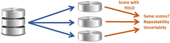 Similarly, our second objective in this study is to verify the repeatability of the scores obtained and the accuracy of an algorithm through a database, depending on the characteristics of the latter. This is essential for certification, which requires qualified testing means. We, therefore, propose analyses of different subsets from the database according to different criteria (type of pedestrian, number of pedestrians, number of images, variability of fog, accessory size, etc.) (Figure 2). Thus, the detection algorithm is applied to each subset. The scores are compared to check the similarities. It allows us to identify the minimum amount of data to be produced to guarantee results with an associated uncertainty.