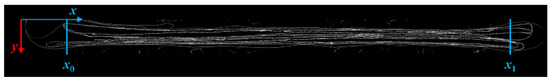 A cropped slice: at the ends of the image, the two blue lines indicate the limits of cropped areas. For each section, only the parts contained between and will be used in the subsequent elaborations.