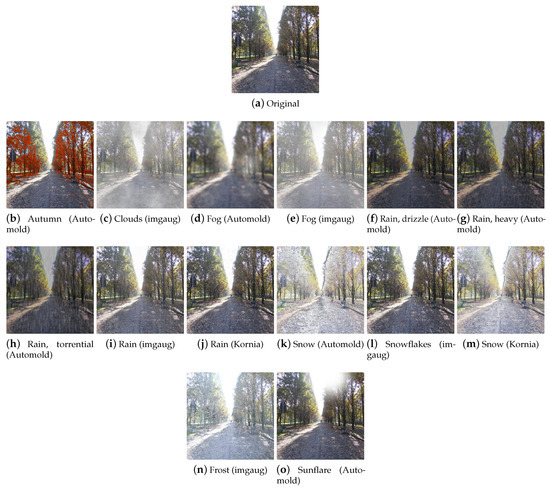 - Ujjwal Saxena. Automold—Road Augmentation Library. 2018. Available online: https://github.com/UjjwalSaxena/Automold--Road-Augmentation-Library (accessed on 10 October 2023).