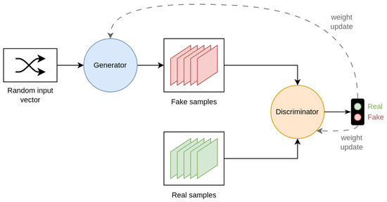 - Goodfellow, I.J.; Pouget-Abadie, J.; Mirza, M.; Xu, B.; Warde-Farley, D.; Ozair, S.; Courville, A.; Bengio, Y. Generative Adversarial Networks. arXiv 2014, arXiv:1406.2661. [Google Scholar] [CrossRef]