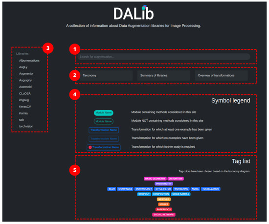 The libraries surveyed in this paper are available at the following links (all accessed on 10 October 2023): Albumentations—https://github.com/albumentations-team/albumentations, AuLy—https://github.com/facebookresearch/AugLy, Augmentor—https://github.com/mdbloice/Augmentor, augraphy—https://github.com/sparkfish/augraphy, Automold—https://github.com/UjjwalSaxena/Automold--Road-Augmentation-Library, CLoDSA—https://github.com/joheras/CLoDSA, imgaug—https://github.com/aleju/imgaug, KerasCV—https://github.com/keras-team/keras-cv, Kornia—https://github.com/kornia/kornia, SOLT—https://github.com/Oulu-IMEDS/solt, torchvision—https://github.com/pytorch/vision. Results obtained by this survey are also available at http://www.ivl.disco.unimib.it/activities/dalib.