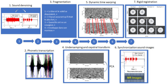 - Sound denoising. In order to suppress the MRI acoustic noise, we used a source-separation algorithm described in [27]. The Gaussian-mixture model was trained on the speech sample with MRI noise and on the clear speech sample recorded at the end of the protocol.