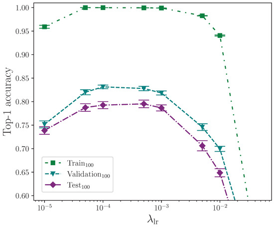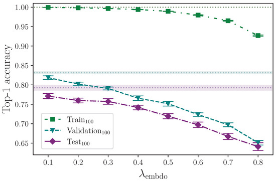 14] to include the best maximum top-1, top-5, and top-10 results for 100 classes from this ablation study (see