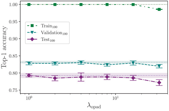 Figure 15 clearly shows no reduction in overfitting nor change in either validation or test set performance. We are somewhat surprised that this technique does not work as expected, and this is perhaps because the effect is too subtle. Increasing the range of values