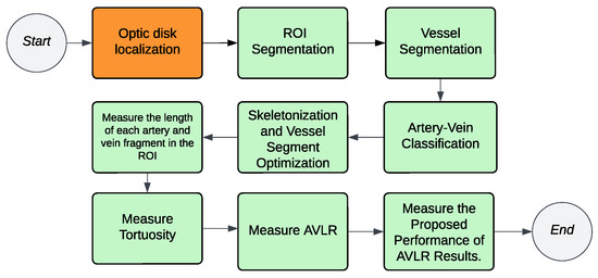 - García-Sierra, R.; López-Lifante, V.M.; Isusquiza Garcia, E.; Heras, A.; Besada, I.; Verde Lopez, D.; Alzamora, M.T.; Forés, R.; Montero-Alia, P.; Ugarte Anduaga, J.; et al. Automated Systems for Calculating Arteriovenous Ratio in Retinographies: A Scoping Review. Diagnostics 2022, 12, 2865. [Google Scholar] [CrossRef] [PubMed]