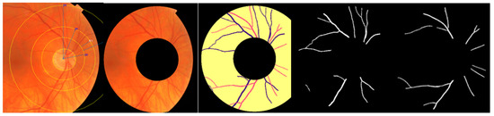- Badawi, S.A.; Fraz, M.M. Multiloss function-based deep convolutional neural network for segmentation of retinal vasculature into arterioles and venules. BioMed Res. Int. 2019, 2019, 4747230. [Google Scholar] [CrossRef] [PubMed]