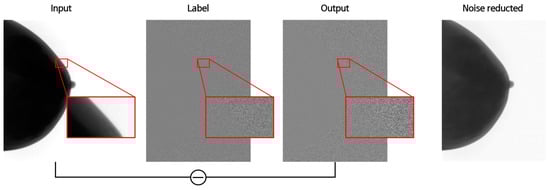 In this study, we developed a deep-learning-based algorithm that allows for the estimation of amplified noise levels induced by the use of virtual grids. Consequently, a noise image can be derived at different levels, ultimately leading to the acquisition of noise-reduced images. Tissues with high density and numerous fine structures, such as the breast, are particularly sensitive to noise. Various types of noise in breast X-ray images can obscure subtle signs of breast cancer, making it especially challenging to detect microcalcifications in the range of 0.1–1 mm [9]. Furthermore, the presence of misaligned and distorted pixel values within the images leads to significant degradation in image quality. Therefore, noise reduction in breast X-ray images is of paramount importance. The results of this study are anticipated to enhance the accuracy of early breast cancer detection, which can be challenging for medical experts, by mitigating noise in breast X-ray images.