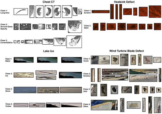 Four datasets across industrial and healthcare domains were used to evaluate the retrieval performance of the proposed ImR framework: wind turbine blade defects [31], chest CT [32], heatsink defects [33] and Photi-LakeIce [34].