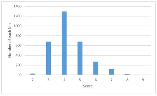 XiheAA dataset [19] This dataset contains 3100 photos, aesthetically scored by an experienced photographer. The photos were taken by the students of the photographer’s on-line class. The type of equipment used to take the photographs was various, including mobile cameras, digital cameras, and SLR cameras. The average time of experience in the photographer’s class was approximately one year. The scores range from two to nine. Therefore, the number of classes N = 8. The distribution of the scores is shown in Figure 1.