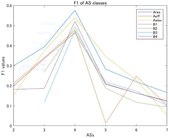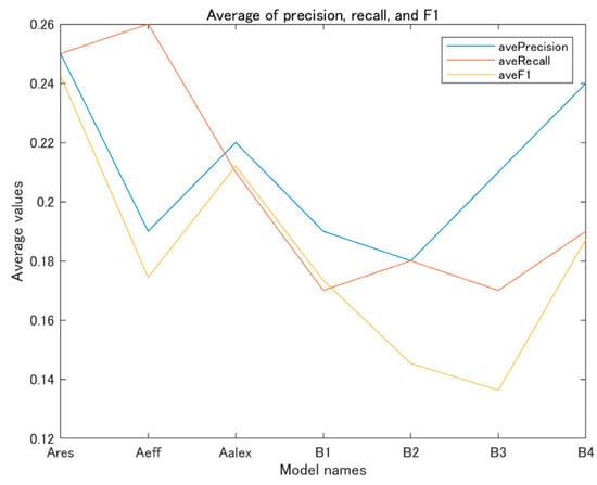 For the precision, the average values of the model Ares and model B4 are comparatively high. For the recall, those of the model Ares, model Aeff and the model B4 are comparatively high. For the F1, which reflects the comprehensive performance of the classification, the average values of the model Ares, model Aalex and model B4 are higher. Accordingly, it can be seen that the model Ares in the A group and model B4 in the B group have the best performance for the AS classification.