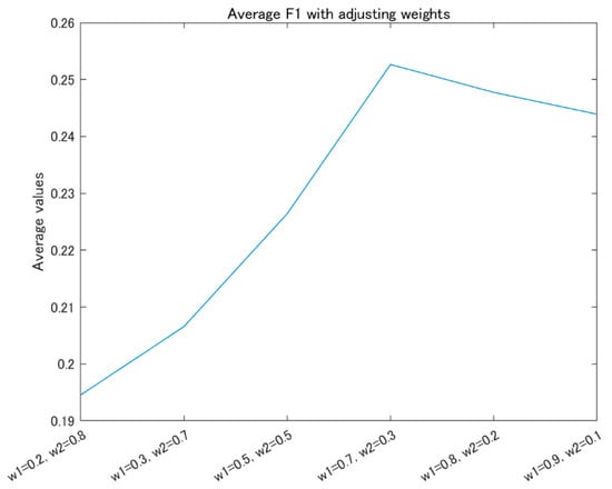 Based on the above observation, the model Ares and model B4 are used for the ensemble, based on Equation (1). Then, the AS of the image is predicted by the Equation (2). Figure 7 shows the average F1 values of the AS classes on the test dataset of XiheAA, with adjusting the weights and .